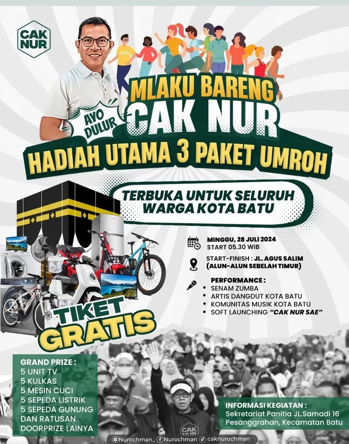 Puncak acara ini akan ditandai dengan peluncuran “Cak Nur Sae” sebagai calon pemimpin Kota Batu di masa depan.