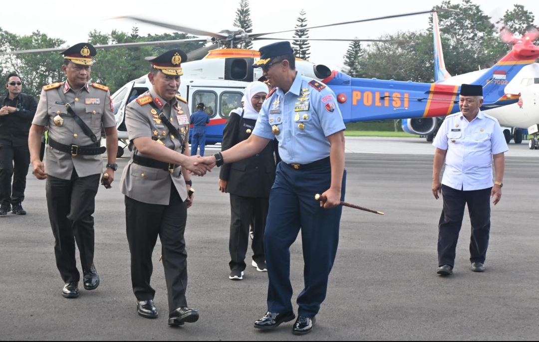 Malang | Serulingmedia.com – Komandan Pangkalan TNI Angkatan Udara (Danlanud) Abdulrachman Saleh, Marsma TNI Reza R.R. Sastranegara, S.Sos., M.A.P., MNSS., menyambut langsung kedatangan dan mengantar keberangkatan Kepala Kepolisian Negara Republik Indonesia (Kapolri), Jenderal Polisi Drs. Listyo Sigit Prabowo, M.Si., di Apron Lanud Abd Saleh, Rabu (25/6/2025).