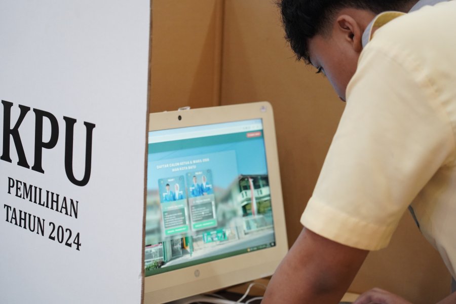 Lebih dari 1.500 pemilih, terdiri atas siswa, guru, hingga karyawan, menggunakan e-voting untuk menyalurkan hak suaranya.