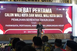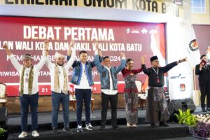 Batu I Serulingmedia.com – Debat pertama pasangan calon Walikota dan Wakil Walikota Batu yang diselenggarakan oleh Komisi Pemilihan Umum (KPU) Kota Batu berlangsung pada Senin (21/10). Kegiatan ini merupakan bagian dari rangkaian kampanye bersama yang bertujuan memperkenalkan visi dan misi para calon kepada masyarakat.