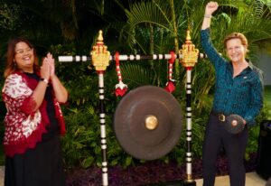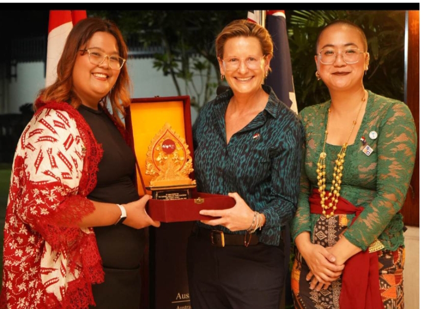 Dalam suasana hangat dan penuh semangat muda, Konsul-Jenderal Australia di Bali, Jo Stevens, bersama Presiden Nasional AIYA, Anastasia Koo, dan Presiden Chapter Bali yang baru dilantik, Deva Aryani, memukul gong Bali sebagai simbol resmi berdirinya Chapter Bali AIYA.