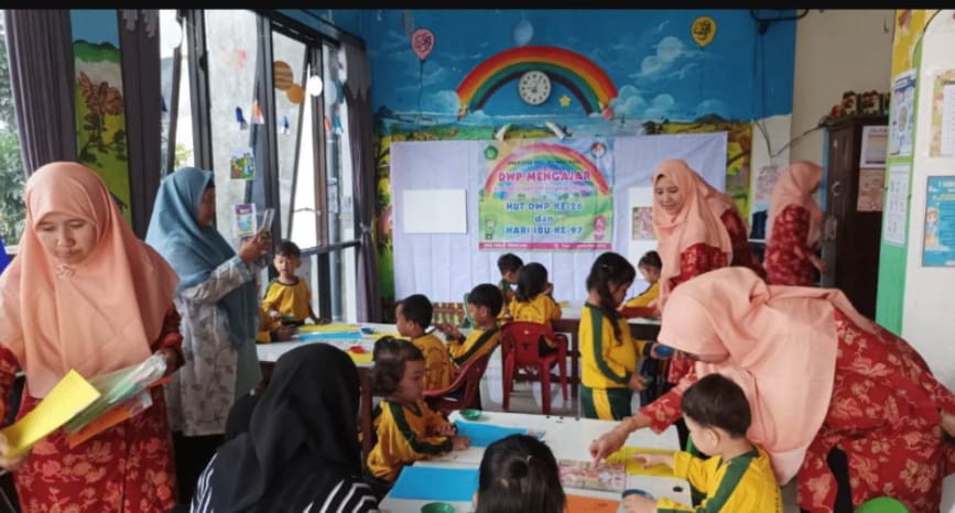 Dalam kegiatan tersebut, jajaran pengurus dan anggota DWP terjun langsung mendampingi proses pembelajaran yang dirancang kreatif, interaktif, dan penuh kehangatan. Anak-anak diperkenalkan pada huruf dan angka, pembiasaan perilaku baik, kegiatan motorik, hingga permainan edukatif yang menstimulasi perkembangan kognitif dan sosial mereka. Suasana ceria dan antusias tampak mengiringi setiap sesi pembelajaran.