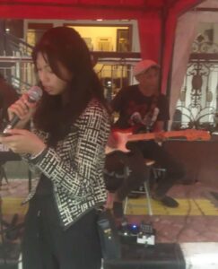 Tidak hanya berbagi makanan, suasana di lokasi pembagian takjil semakin meriah dengan adanya hiburan musik live.