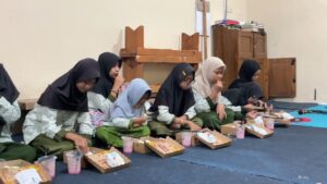 Menjelang waktu berbuka puasa, kegiatan dilanjutkan dengan ngabuburit bersama melalui sesi tanya jawab berhadiah yang berkaitan dengan pengetahuan agama dan hafalan Al-Qur’an. Para santri tampak antusias mengangkat tangan untuk menjawab pertanyaan, sehingga suasana semakin meriah dengan gelak tawa dan keceriaan.