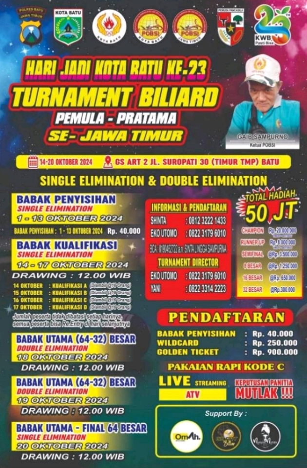 GS Art 2 Biliar Rayakan HUT Kota Batu Ke-23, Gelar Turnamen Bergengsi Berhadiah Rp 50 JutaPemanasan Menuju Porprov Jatim 2025