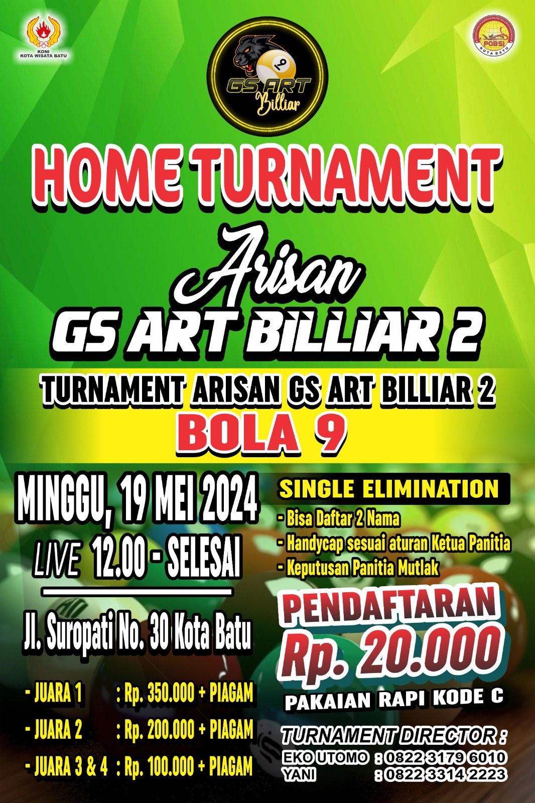 Batu | serulingmedia.com- Kembali, GS Art2 Biliar Batu menggelar Kejuaraan Terbuka Biliar “Home Tournamen Arisan GS Art Biliar 2″ yang direncanakan Minggu ( 19/5/2024 ).
