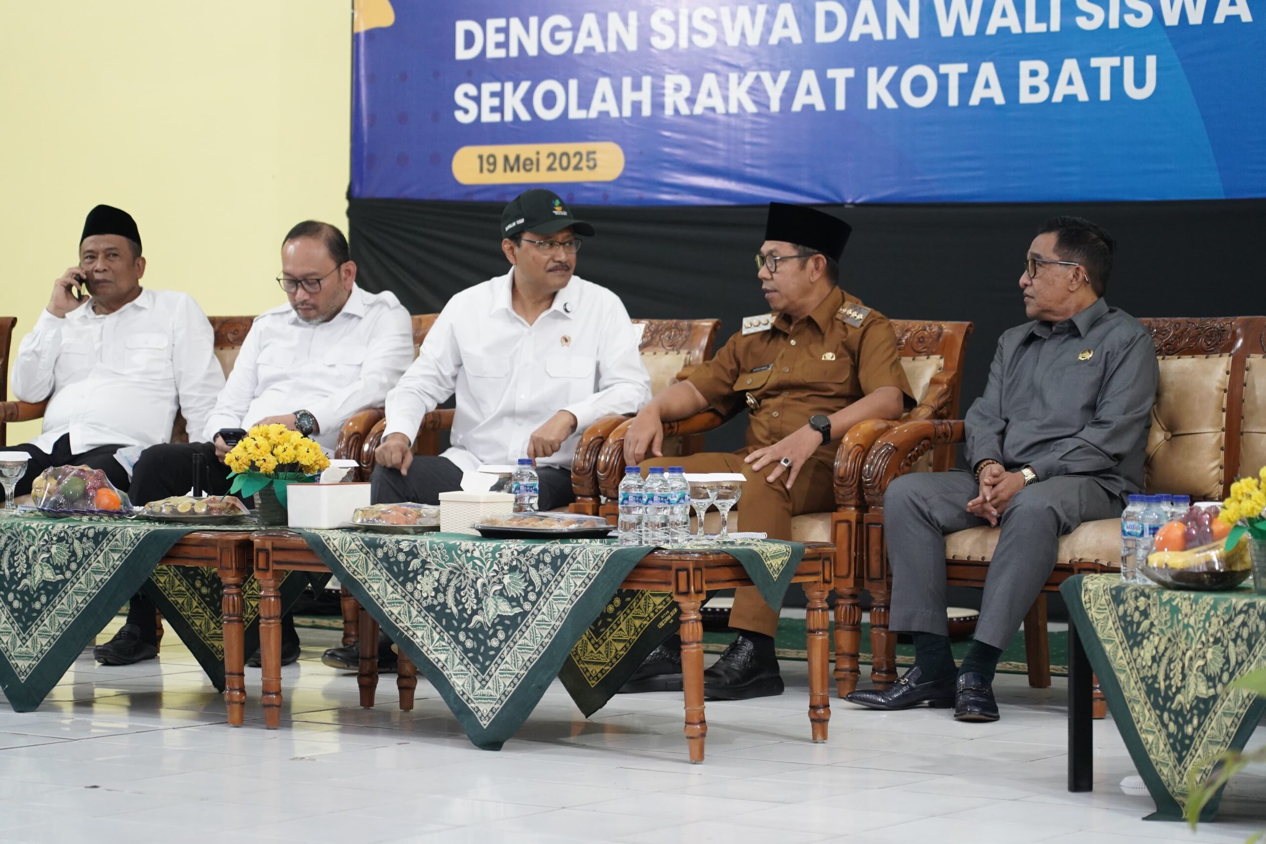 Wali Kota Batu, Nurochman, menyampaikan dukungan penuh terhadap program Sekolah Rakyat dan siap bersinergi dengan Kementerian Sosial demi keberhasilan program tersebut. Ia juga berdialog langsung dengan para orang tua siswa guna mendengar aspirasi serta tanggapan mereka terhadap program Presiden Prabowo Subianto dalam bidang pendidikan.