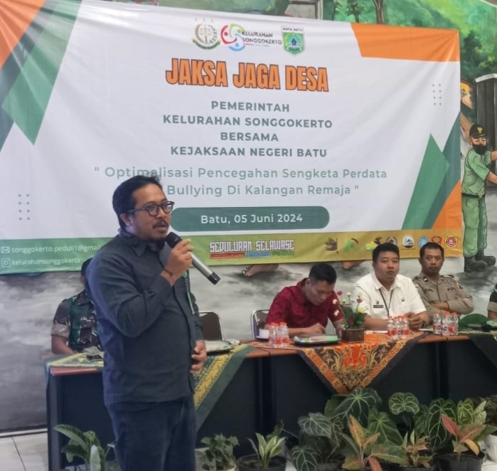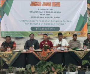 Batu | serulingmedia.com – Kejaksaan Negeri Kota Batu menggelar kegiatan penyuluhan hukum dengan tema “Optimalisasi Pencegahan Sengketa Perdata dan Bullying di Kalangan Remaja” yang berlangsung di balai kelurahan Songgokerto pada Rabu malam ( 5/6/2024 ).