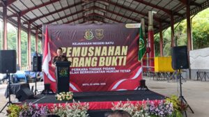 Kepala Seksi Pemulihan Aset dan Pengelolaan Barang Bukti (PAPBB) Kejari Batu, Kurnia Aji Nugroho, S.H., M.H., melaporkan bahwa pemusnahan ini merupakan pelaksanaan tugas berdasarkan penetapan hakim serta wujud tanggung jawab institusi dalam memastikan barang bukti tidak kembali disalahgunakan.