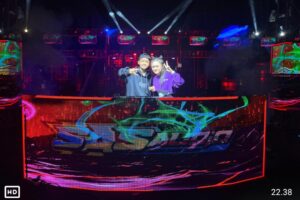 Dengan kepiawaian mereka mengolah turntable, ribuan penonton larut dalam euforia musik dan pesta cahaya.