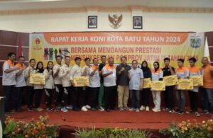 Batu | Serulingmedia.com – Komite Olahraga Nasional Indonesia (KONI) Kota Batu mengadakan Rapat Kerja (Raker) Tahun 2024 di Hotel Zam-Zam, Kota Batu, Sabtu (7/12/2024).