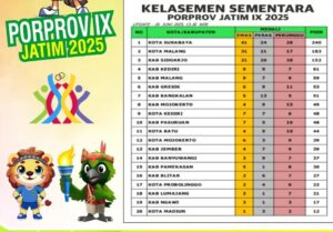 Dengan perolehan tersebut, Kota Batu menempati posisi ke-11 dalam klasemen sementara Porprov Jatim IX 2025. Posisi puncak masih diduduki Kota Surabaya dengan 41 emas, 24 perak, dan 28 perunggu. Sementara itu, Kota Malang berada di peringkat kedua, disusul Kabupaten Sidoarjo di posisi ketiga.