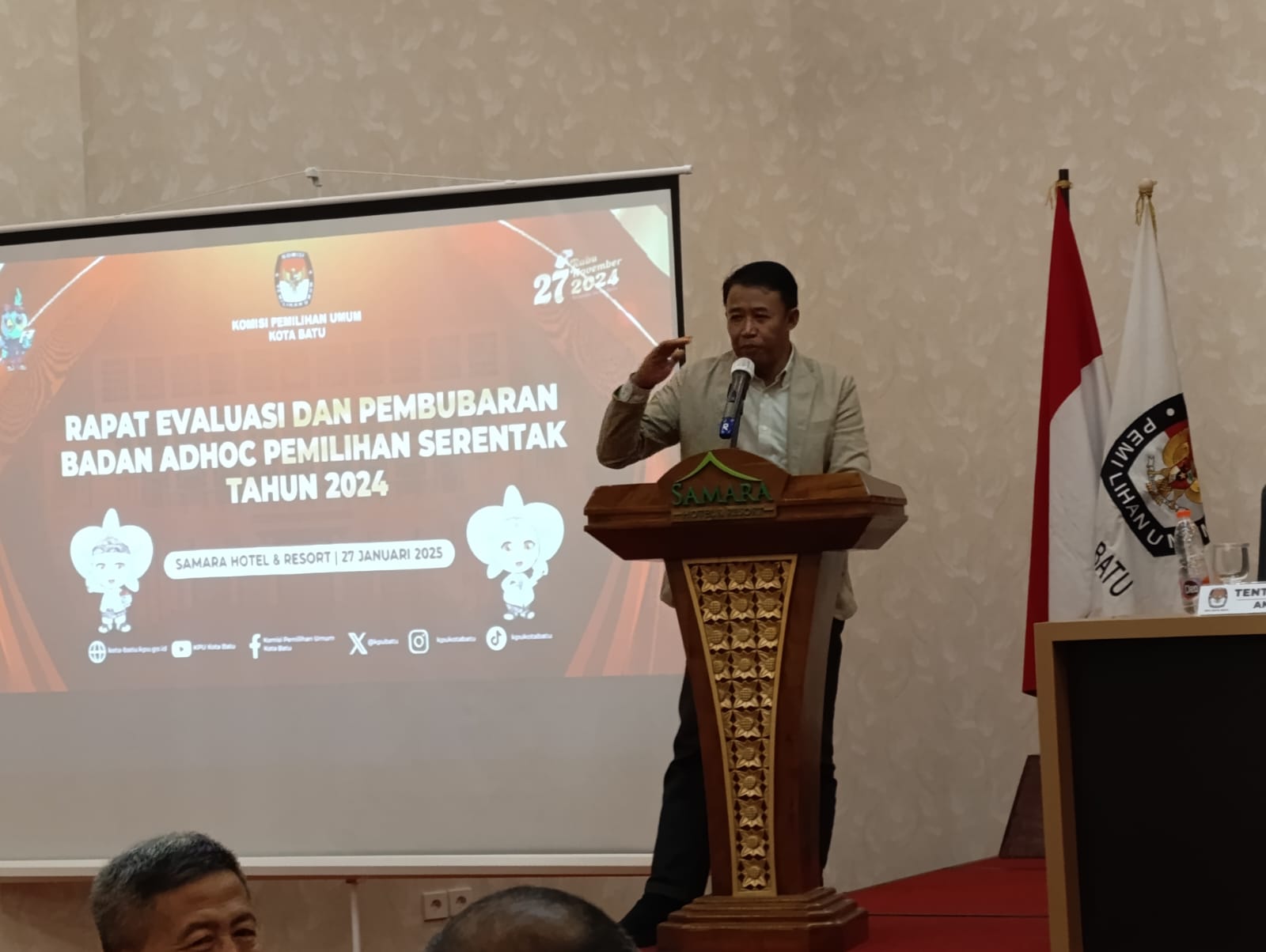 Penegasan tersebut disampaikan Heru dalam acara Rapat Evaluasi dan Pembubaran Badan Adhoc Pemilihan Serentak 2024 yang berlangsung di Samara Hotel & Resort Batu, Senin (27/1/2025).