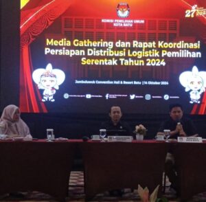 Batu | Serulingmedia.com – Komisi Pemilihan Umum (KPU) Kota Batu menggelar media gathering dan rapat koordinasi (rakor) persiapan distribusi logistik pemilihan serentak 2024 di Hotel Jambuluwuk, Senin (14/10/2024).