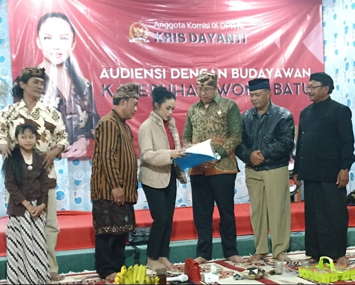 Batu | Serulingmedia.com – Anggota Komisi IX DPR RI Krisdayanti melakukan audiensi dengan para budayawan Kasepuhan Warga Batu (KWB) di Villa Lemba Permata desa Bulukerto, Bumiaji, Selasa malam (23/7/ 2024 ).