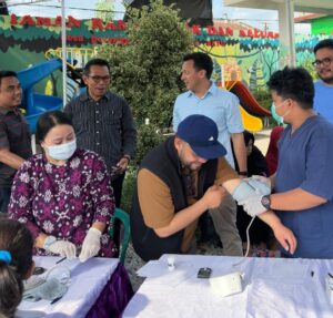 Moreno Soeprapto turun langsung di lokasi pemeriksaan di Taman Rama Anak dusun Lahor, Kelurahan Ngaglik, Kota Batu, guna memastikan pelayanan pengobatan berjalan lancar.