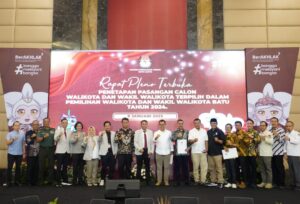 Batu | Serulingmedia. Com – Komisi Pemilihan Umum (KPU) Kota Batu secara resmi menetapkan pasangan Nurochman SH MH dan Heli Suyanto SH MH sebagai Wali Kota dan Wakil Wali Kota Batu terpilih periode 2024-2029 dalam rapat Pleno di Hotel Singhasari Batu, Rabu (8/1/2025).