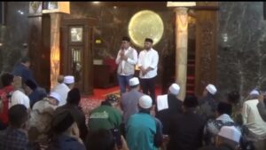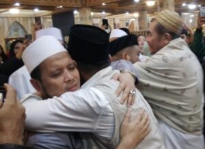 Di dalam masjid, suasana penuh haru dan kebahagiaan terasa saat ratusan jemaah dan ulama berebut menyalami pasangan Walikota dan Wakil Walikota terpilih.