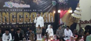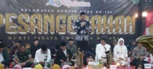 Dalam sambutannya, Kepala Desa Pesanggrahan Imam Wahyudi menegaskan peringatan selamatan desa ini adalah bentuk rasa syukur kepada Allah atas keberlangsungan kegiatan pemerintahan yang aman dan terkendali. “Semoga dengan penyelenggaraan selamatan bersih desa ke-168 ini, Desa Pesanggrahan semakin makmur, damai, dan masyarakatnya hidup rukun dan sejahtera,” tandas Imam Wahyudi, yang mengenakan setelan ikat kepala dan jas warna putih serasi dengan istrinya.