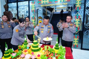 Rangkaian kegiatan kemudian dilanjutkan dengan acara syukuran sederhana HUT ke-68 Polda Kaltim. Momentum ini ditandai dengan pemotongan tumpeng sebagai simbol rasa syukur atas perjalanan panjang dan pengabdian Polda Kaltim dalam menjaga keamanan serta ketertiban masyarakat.