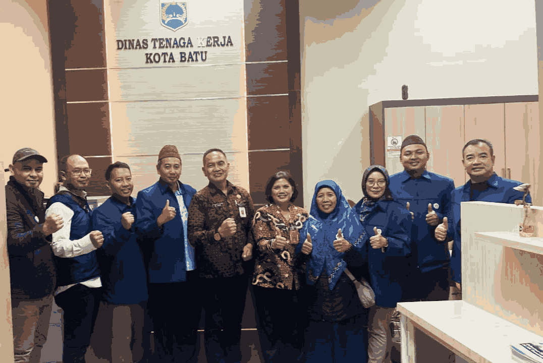 Batu I Serulingmedia.com — Dalam momentum bulan Syawal, Dewan Pimpinan Cabang Konfederasi Sarikat Buruh Muslimin Indonesia Nahdlatul Ulama (DPC K-SARBUMUSI NU) Kota Batu melakukan kunjungan silaturahmi ke Kantor Dinas Tenaga Kerja (Disnaker) Kota Batu, Kamis (2/4/2026). Pertemuan ini menjadi langkah awal membangun dialog strategis menjelang peringatan Hari Buruh Internasional (May Day) pada 1 Mei 2026.