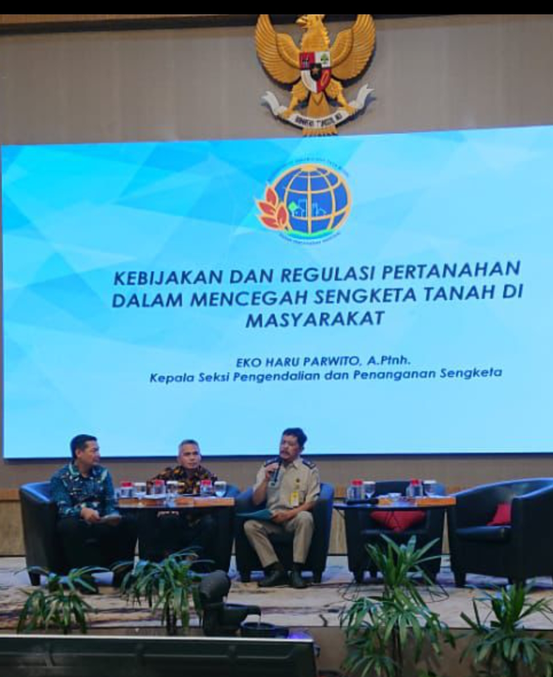 Salah satu narasumber yang hadir adalah Kepala Seksi Pengendalian dan Penanganan Sengketa Kantor Pertanahan Kota Batu, Eko Haru Parwito, A.Ptnh., yang membawakan materi bertajuk “Kebijakan dan Regulasi Pertanahan dalam Mencegah Sengketa Tanah di Masyarakat.”