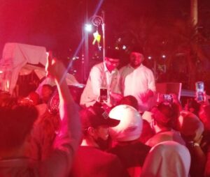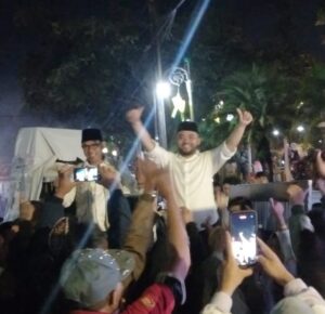 Perayaan kemenangan pasangan Nurochman – Heli berlangsung meriah di depan Masjid Agung An-Nur Batu, kawasan sentral Alun-Alun Kota Batu. Ribuan pendukung, mulai dari yang mengenakan sarung hingga celana pendek, memenuhi alun-alun. Suasana semakin semarak dengan nyala kembang api dan spanduk besar bertuliskan “WONG MBATU ORA SEPELE.”
