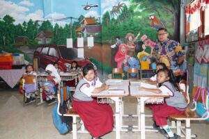 Aries Agung Paewai tampak antusias berinteraksi dengan para siswa yang sedang menjalani pembelajaran berbasis digital ini, menegaskan pentingnya kesiapan anak-anak di era teknologi.