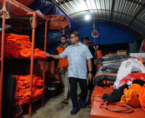 Dalam kunjungannya, Aries menyempatkan diri menyapa para petugas yang berjaga selama 24 jam penuh. Didampingi petugas BPBD, Basarnas, dan relawan, Aries mengecek gudang logistik dan memastikan kondisi peralatan dalam keadaan siap digunakan. Tidak hanya itu, ia juga memeriksa ransum makanan instan untuk memastikan masa kedaluwarsanya, guna menghindari kendala distribusi bantuan darurat.