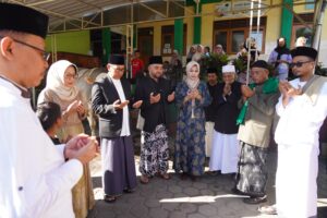 Batu I Serulingmedia.com – Wali Kota Batu Nurochman dan Wakil Wali Kota Heli Suyanto bersama Ketua TP PKK Siti Faujiyah Nurochman serta Ketua Bidang II TP PKK Ridha Agusta Heli Suyanto menyerahkan secara simbolis satu ekor sapi kurban atas nama Presiden Republik Indonesia, Prabowo Subianto, kepada panitia kurban Masjid Nurul Hidayah, Desa Pesanggarahan, Kecamatan Batu, Jumat (6/5/2025).