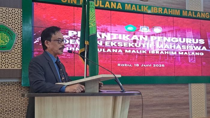 Malang | Serulingmedia.com – Wakil Rektor Bidang Kemahasiswaan UIN Maulana Malik Ibrahim Malang, Dr. H.A. Fatah Yasin, M.Ag., secara resmi melantik pengurus Dewan Eksekutif Mahasiswa (DEMA) periode 2025 di Aula Lantai 5 Gedung Rektorat, Rabu (18/6/2025) siang.