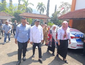 Batu | Serulingmedia.com – Menteri Sosial Syaifullah Yusuf (Gus Iful) tampak trenyuh saat mendengar lantunan lagu Terima Kasih Guru yang dibawakan si kembar Love Sebening Wahid dan Love Sibening Isnaini.
