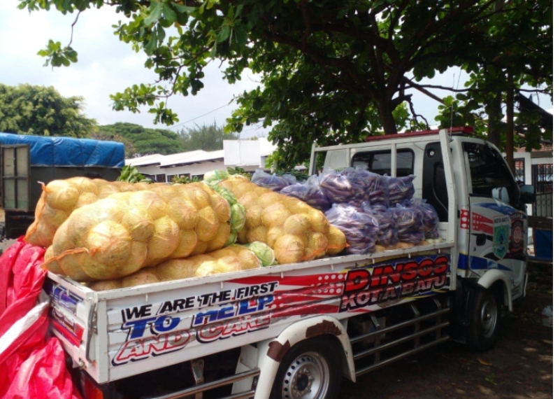 Sayuran yang dikirim merupakan hasil panen petani Batu, di antaranya wortel, kubis, sawi, terong, bawang prei, manisa, sawi daging, dan tomat.