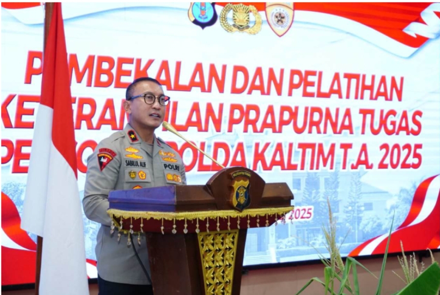 Balikpapan | Serulingmedia.com – Wakapolda Kalimantan Timur, Brigjen Pol Dr. H. M. Sabilul Alif, S.H., S.I.K., M.Si., secara resmi membuka kegiatan Pembekalan dan Pelatihan Keterampilan (Latram) Prapurna Tugas bagi personel Polda Kaltim Tahun Anggaran 2025. Kegiatan ini digelar di Gedung Mahakam, Mapolda Kaltim, Kamis (31/7/2025).