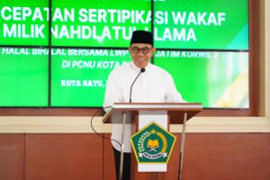 Batu | Serulingmedia.com — Wali Kota Batu, Nurochman, secara tegas menyatakan dukungan penuh terhadap langkah strategis yang digerakkan oleh PCNU dan Lembaga Wakaf dan Pertanahan (LWP) NU Jawa Timur dalam mempercepat proses sertifikasi tanah wakaf.