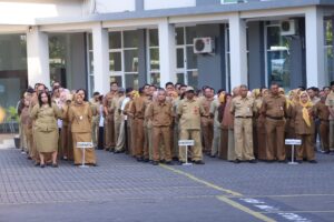 Batu | Serulingmedia.com – Wali Kota Batu, Nurochman, memimpin kegiatan apel pagi bersama Aparatur Sipil Negara (ASN) Pemerintah Kota Batu di halaman Balaikota Among Tani, Senin (5/5/2025).
