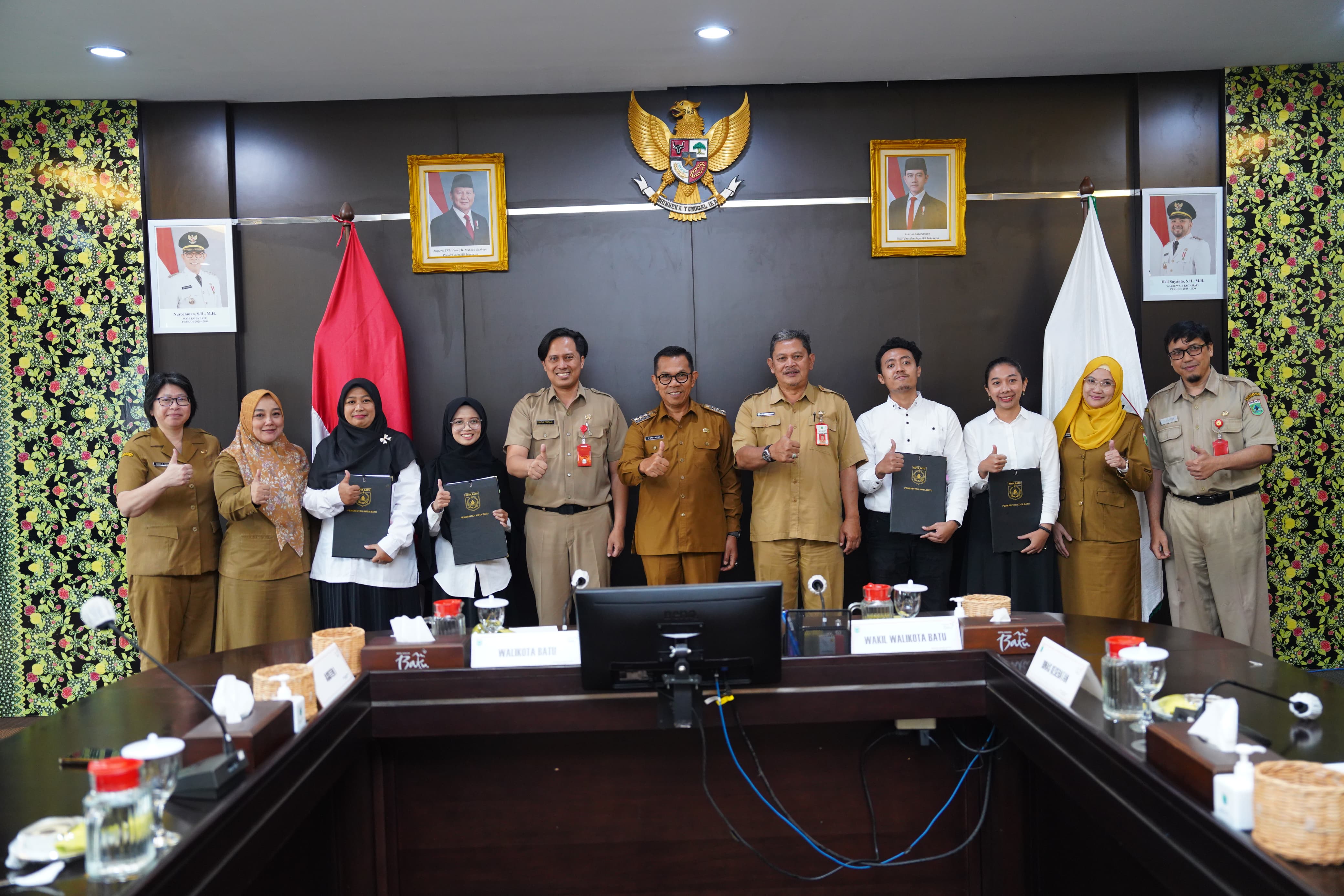 Batu | Serulingmedia.com – Wali Kota Batu Nurochman menyaksikan langsung penandatanganan perjanjian kerja dan memberikan pengarahan kepada tenaga medis, tenaga kesehatan, serta tenaga pendukung Puskesmas di Ruang Rapat Utama, Balai Kota Among Tani, Kota Batu, Senin (07/07/2025).