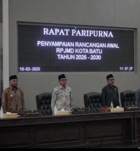 Batu | Serulingmedia.com – Wali Kota Batu, Nurochman, menyampaikan Rancangan Awal (Ranwal) Rencana Pembangunan Jangka Menengah Daerah (RPJMD) Tahun 2025-2030 dalam rapat paripurna DPRD Kota Batu yang berlangsung di Gedung DPRD Kota Batu pada Senin (10/3/2025).